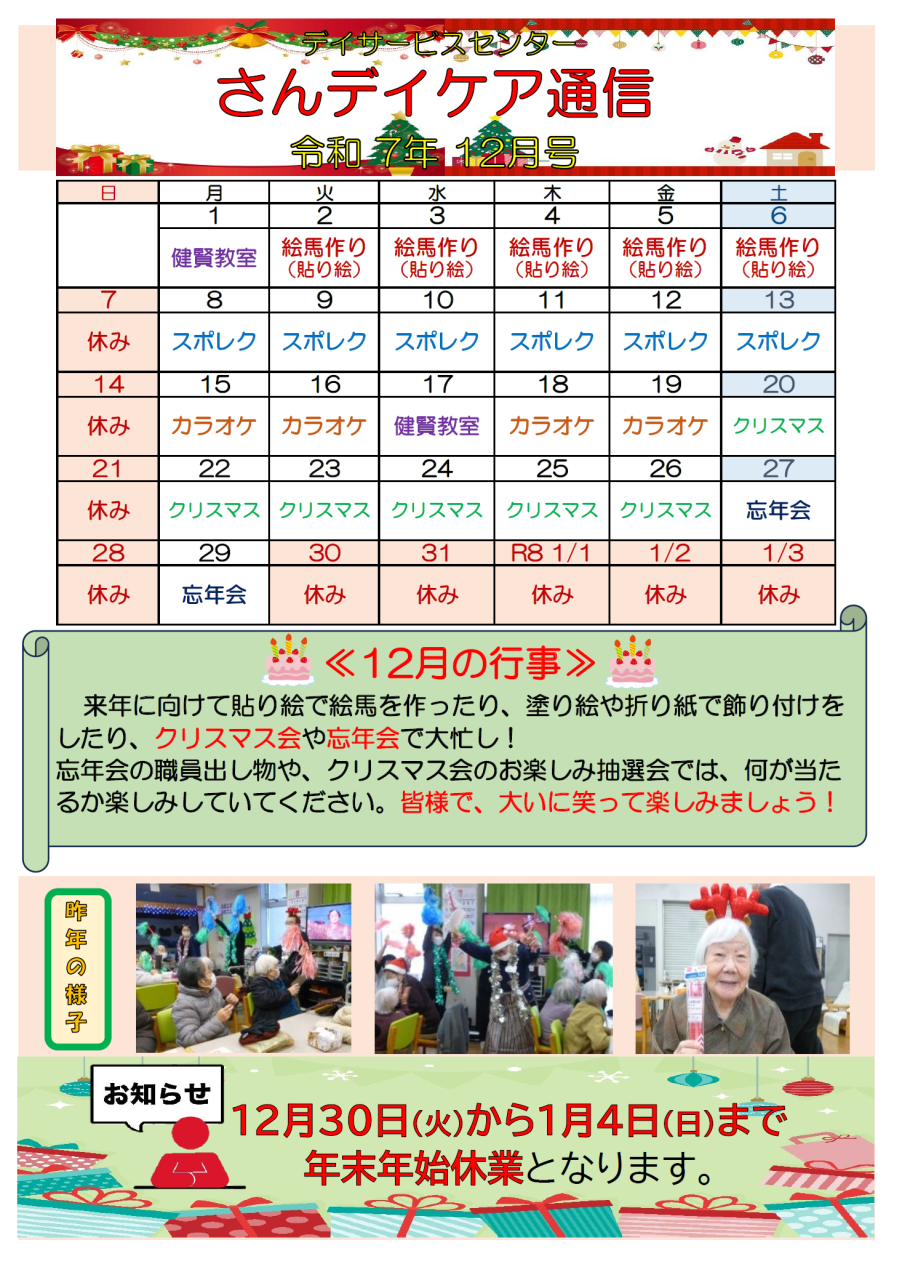 ≪NEW≫さんデイケア通信「令和7年12月号」